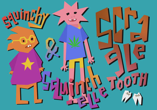 "Squnichy & Squinchelle Scraggletooth'Character design mock-up produced digitally.2024