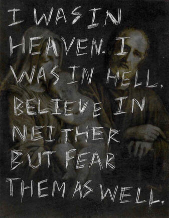 "Doin' the Cockroach"Prayer card and ink, carved with utility knife. Original lyrics by Modest Mouse. Made for We are Between: A Modest Mouse Fanzine.2023
